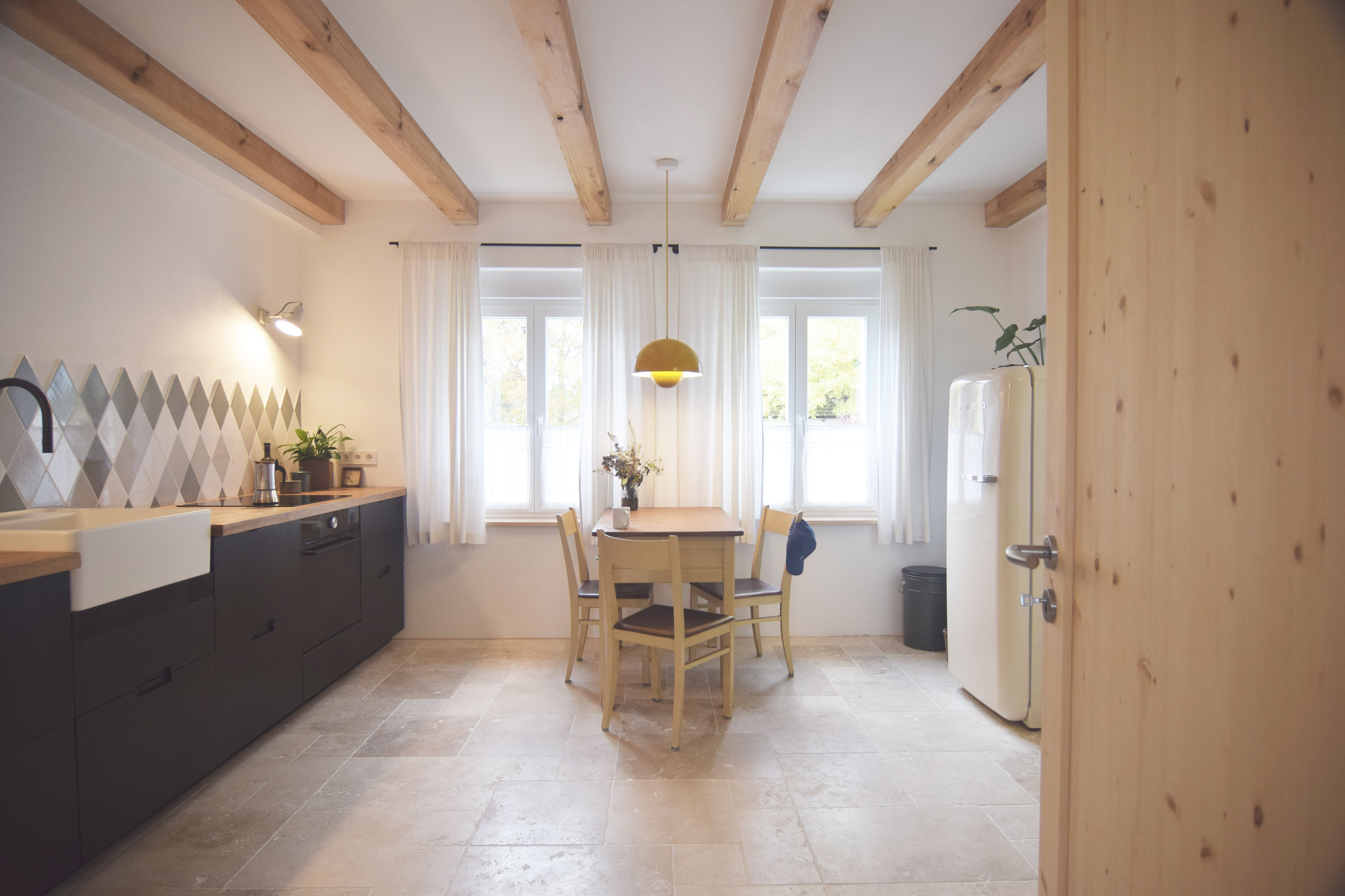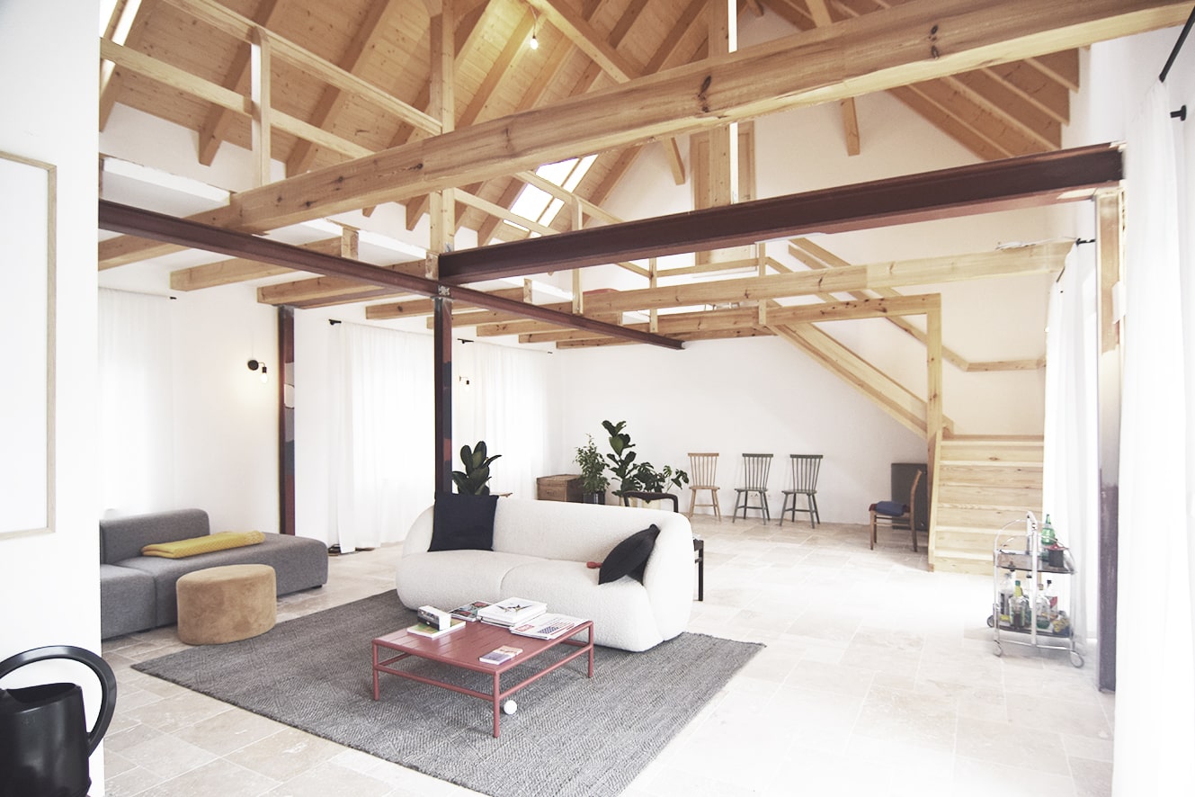 This farmhouse located in the south of Berlin is made of three different buildings: the main house (100sm), an old cowshed and the former piggery.